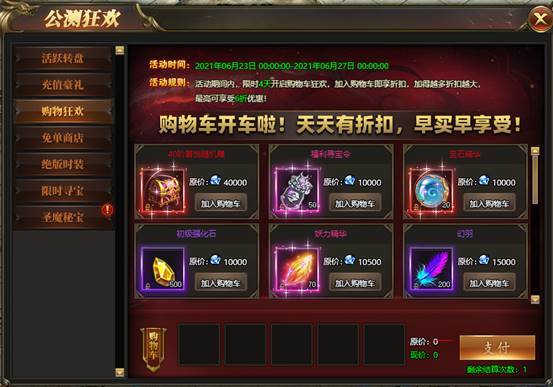 活动期间内,免单商店限时5天开启,大量稀有材料超级低价格出售!商店物品每2小时或全部购买时立即刷新,前60次免费立即刷新,消耗的钻石会跟着刷新次数变化。每样道具限购一次,每次购买都有概率免单,免单不消耗钻石!!